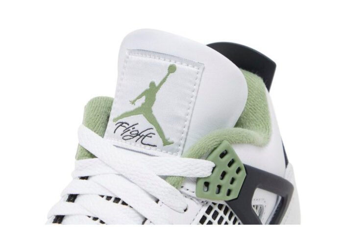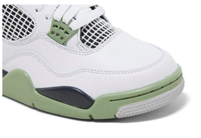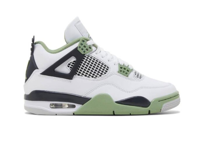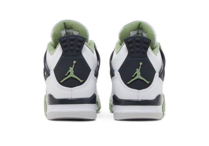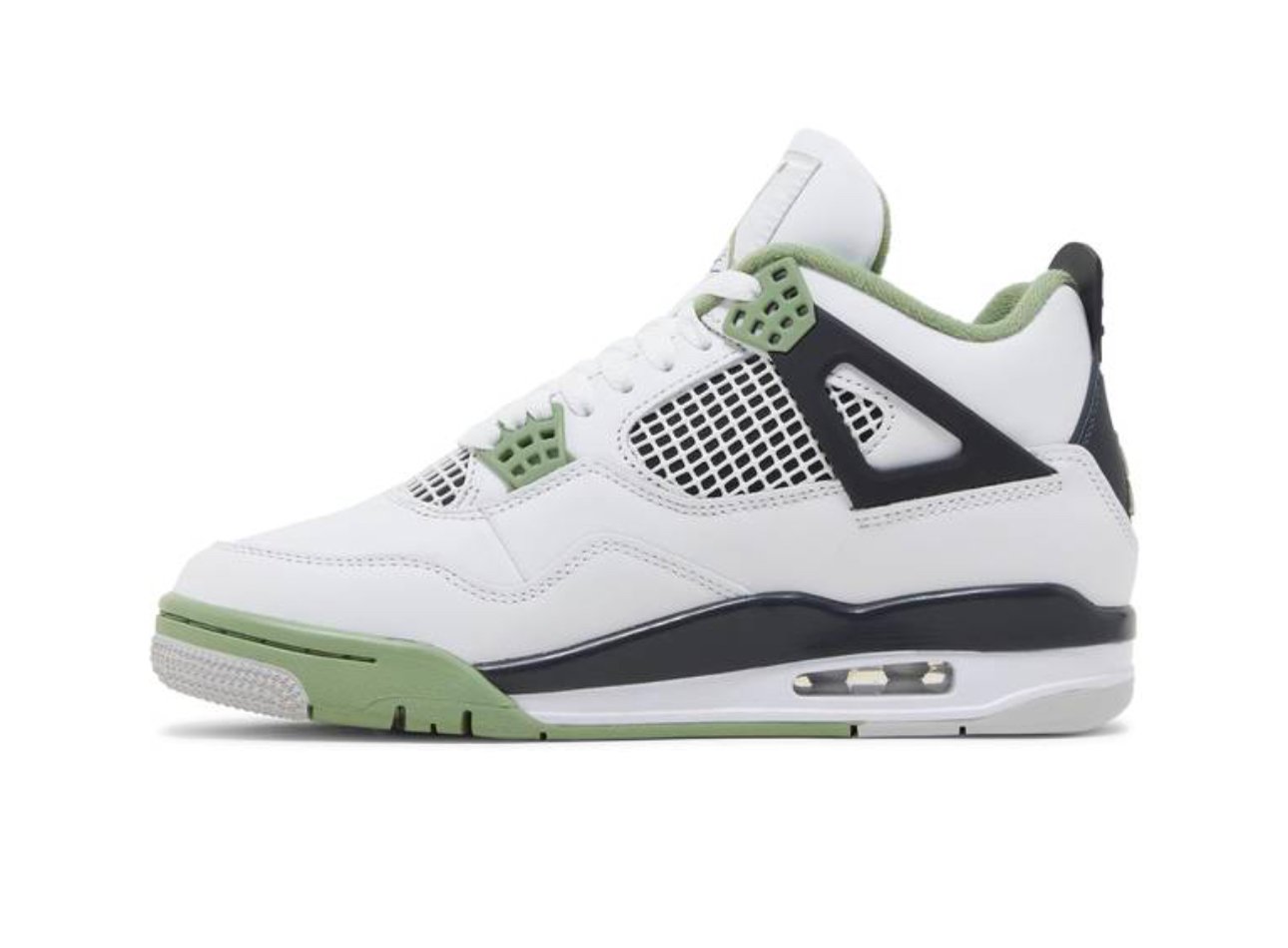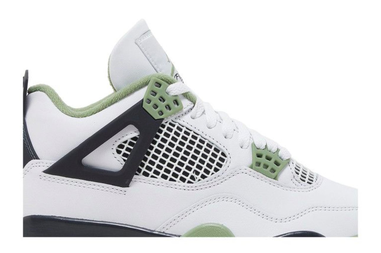 The Air Jordan 4 Seafoam (W) received the same color-blocking treatment as the Jordan 4 Fire Red, and Jordan 4 Military Blue. The Seafoam Air Jordan 4 features a smooth white leather upper, with a black midsole and heel tab. Seafoam green eyelets, mudguard, sock lining, and tongue and heel logos, add a layer of contrast to the sneaker.