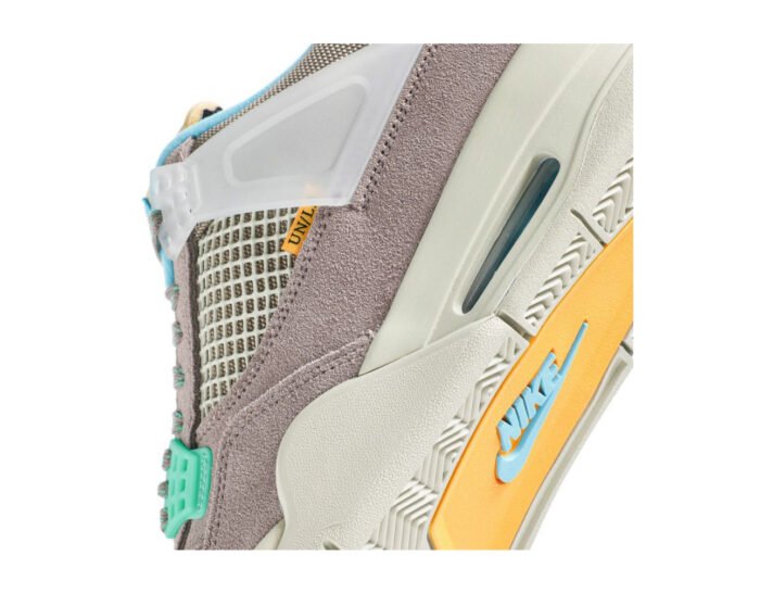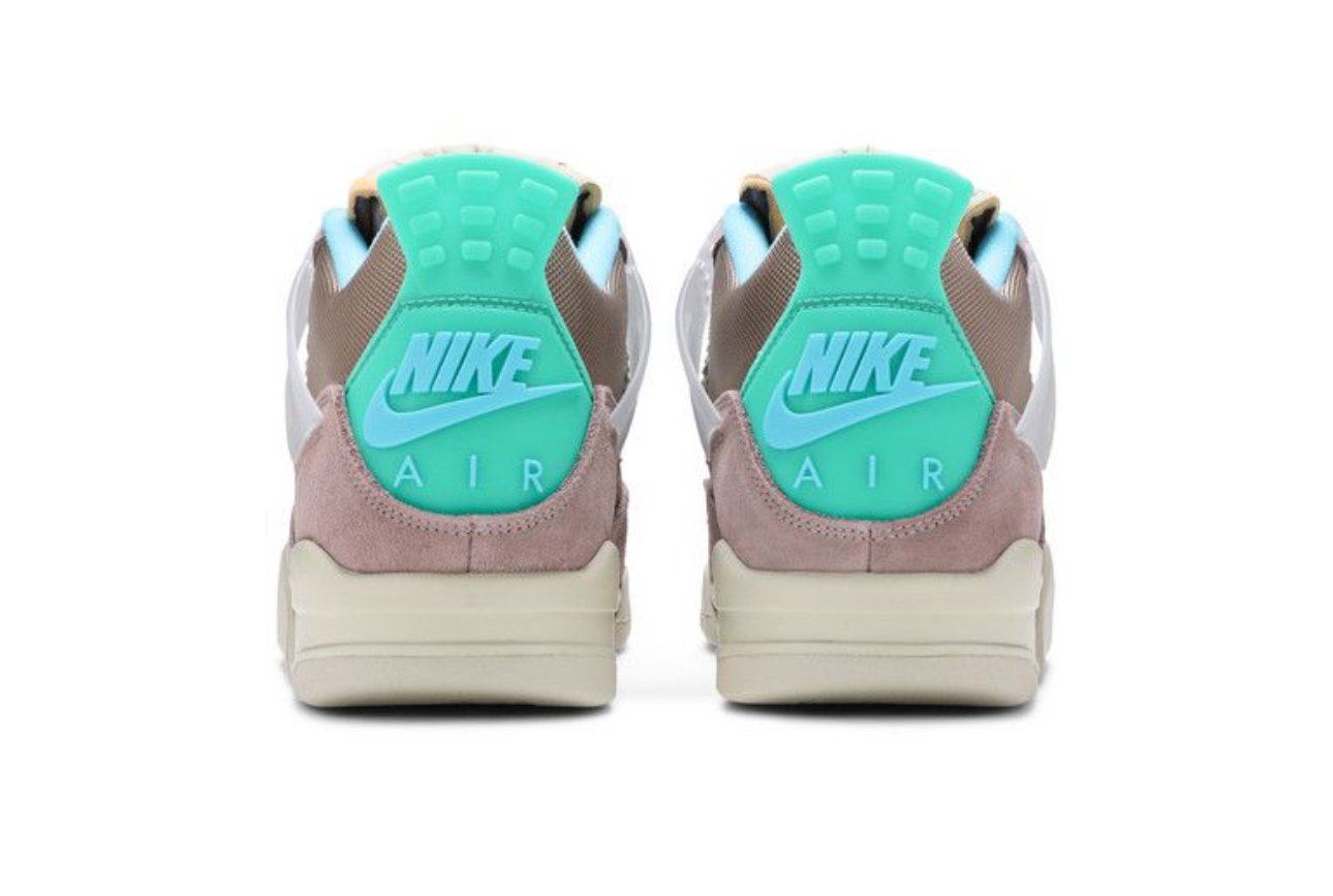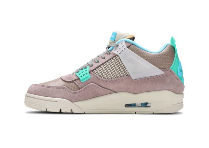 The Air Jordan 4 Union LA Taupe Haze features a Taupe Haze mesh and suede upper with Roma Green heel tabs and translucent lace loops. From there, Union LA woven tabs on the lateral side and a Sail sole complete the design.
