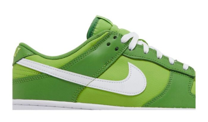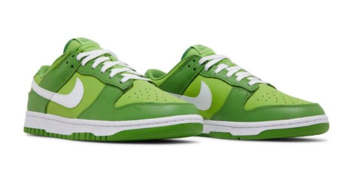 The Nike Dunk High Australia arrives with a white and dark green smooth leather upper in a traditional two-tone color blocking style. Hits of yellow on the heel tab and woven tongue label add slight contrast. From tThe Nike Dunk Low Chlorophyll features a light green smooth leather upper with darker green overlays and white Swooshes. Woven tongue labels and Nike embroideries on the heel tabs add a retro look. At the base, a white and green foam sole completes the design.