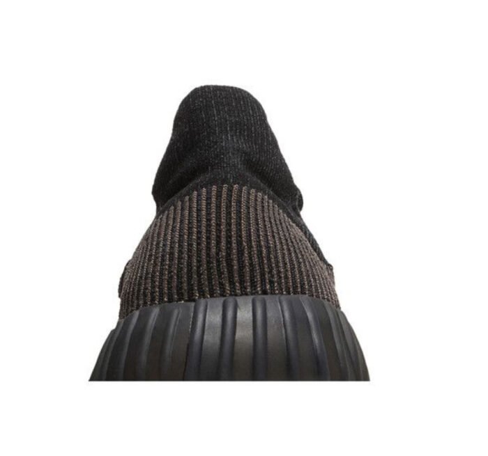 The adidas Yeezy 350 V2 CMPCT Slate Carbon features a sock-like black and Slate Carbon Primeknit upper with raised collars and woven eyelets. Hits of light brown add a subtle contrast to the design’s dark presence. At the base, an all-black Boost sole adds cushioning and support.